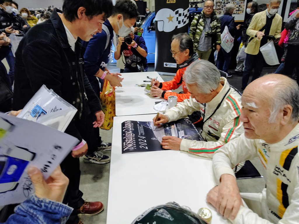毎年2月にパシフィコ横浜で開催される「ノスタルジック2デイズ」(主催:芸文社)は、全国からヒストリック関連事業者の出展、そしてヒストリックファンが訪れるビッグイベントです。そのなかでレジェンドレーシングドライバーズクラブは、テーマに沿ったトークショーを行います。終了後はドライバのサイン会が行われます。 |