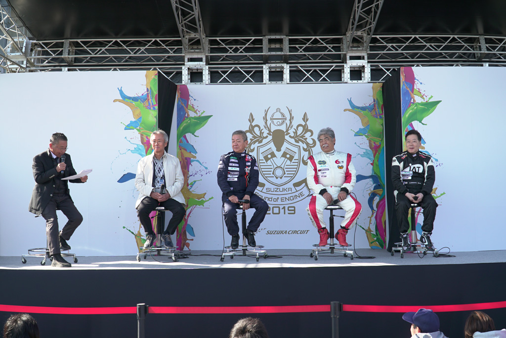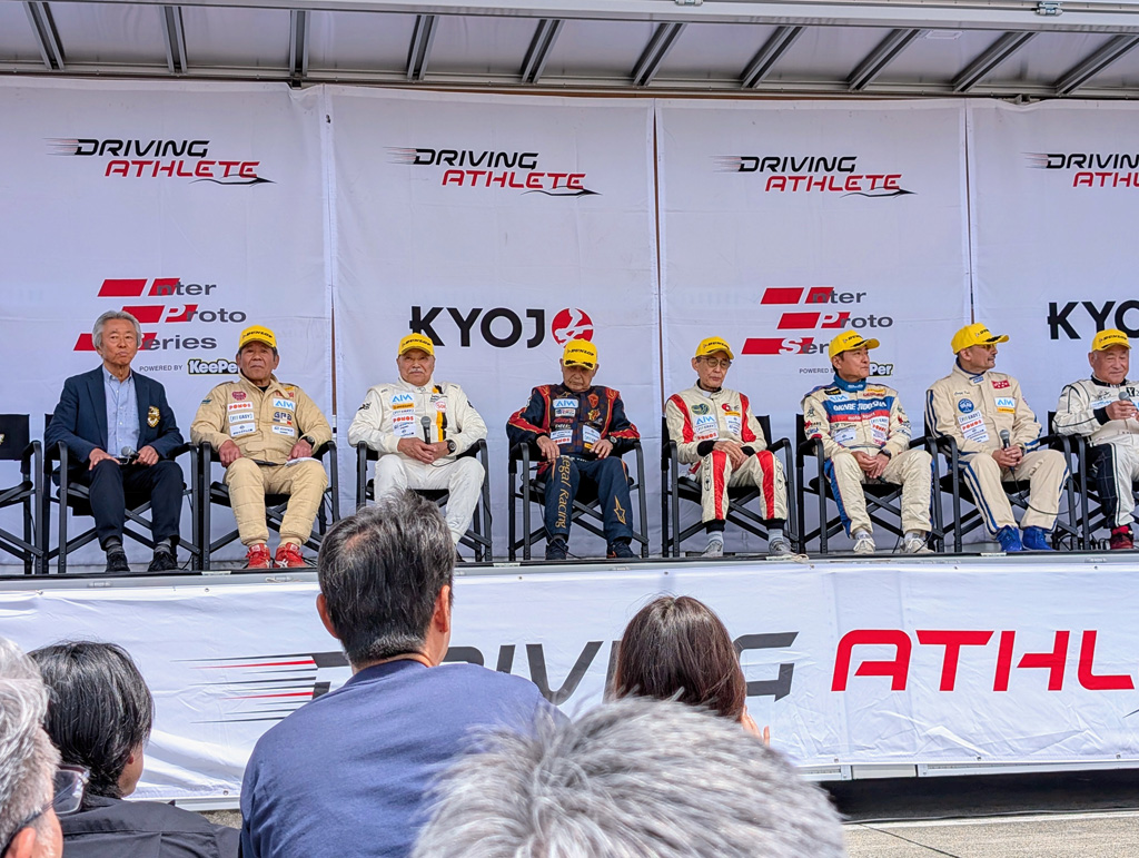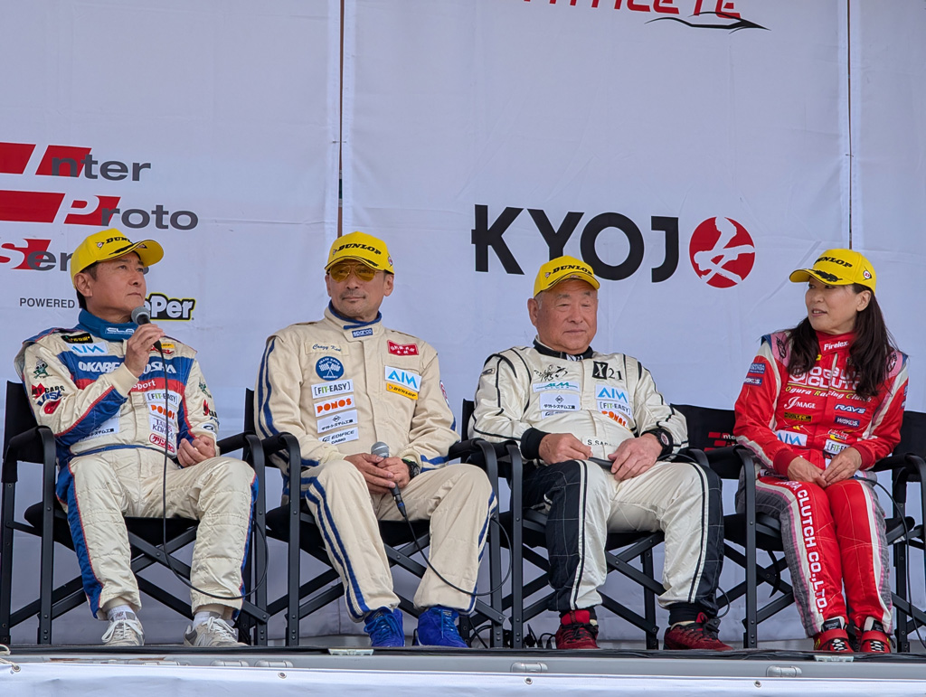 富士スピードウェイで開催される「インタープロト」シリーズの1戦で、エキジビションレースとして「レジェンドクラブカップ」が開催されます。レースの合間、パドックに設けられたステージで、参加ドライバーのトークショーが行われます。終了後には会場のファンと参加ドライバーとの記念撮影など、ファンとの距離が近くなっています。 |